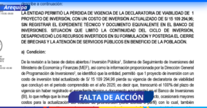 La Municipalidad Distrital de Yanque perdió la vigencia de un proyecto de inversión valorizado en S/ 15,109,294.96, destinado al mejoramiento y ampliación del sistema de riego y la creación de la mini represa de Calacondori. … Sigue leyendo Yanque pierde proyecto de riego valorizado en S/ 15 millones