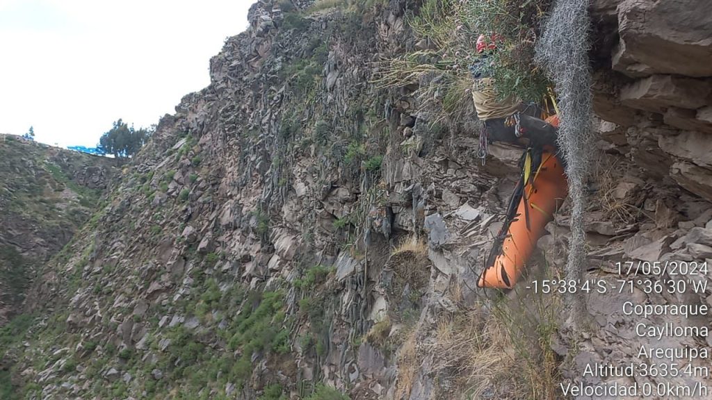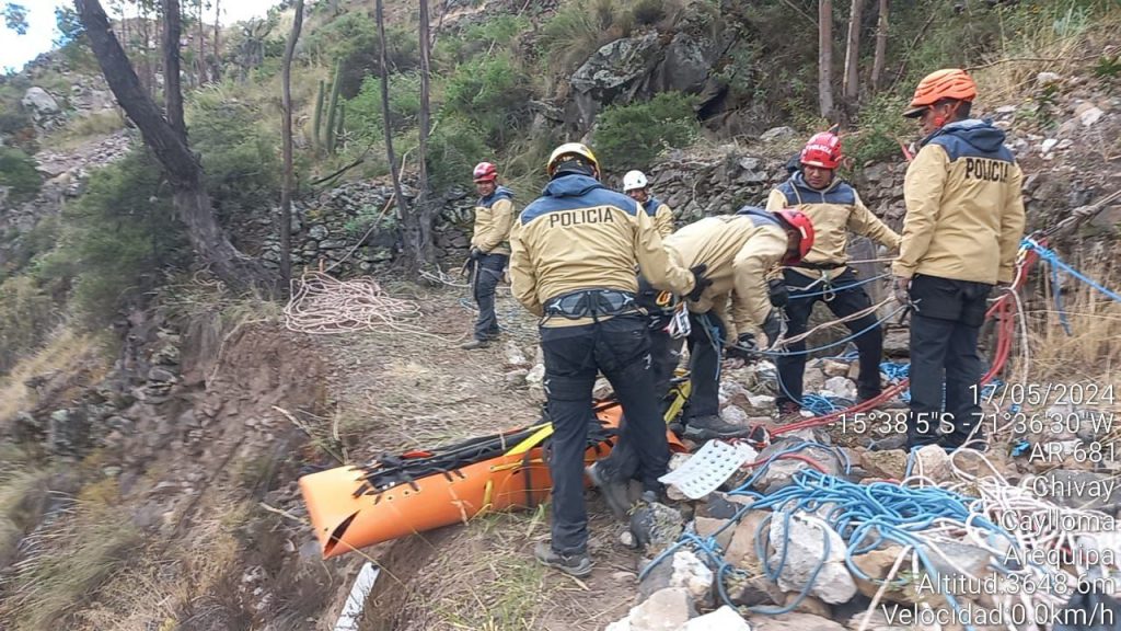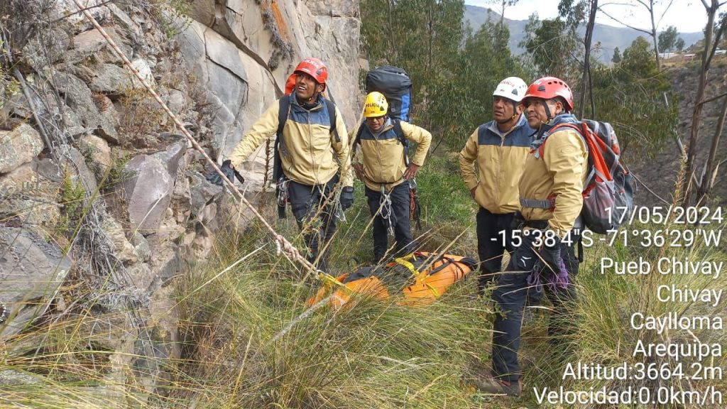 Agentes de la Policía de Alta Montaña recuperaron el cadáver de Avelino Avelino Mollo Soto (39), quien fue hallado muerto en un barranco del sector de Munaypata, distrito de Chivay, en la provincia de Caylloma, luego de desaparecer desde el pasado 11 de mayo al asistir a un matrimonio.