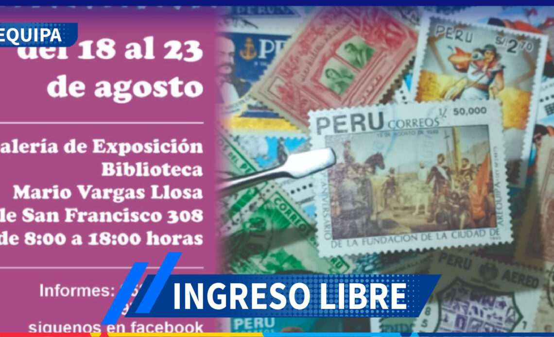 La Subgerencia de Cultura del Gobierno Regional de Arequipa, en coordinación con la Asociación Filatélica de Arequipa, invita a la ciudadanía a participar en la “Muestra Filatélica Arequipa 2025”, que se desarrollará del 19 de agosto al 3 de setiembre en la Biblioteca Personal de Mario Vargas Llosa, ubicada en la calle San Francisco N° 306 – Cercado.