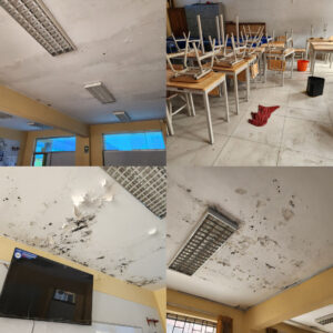Las constantes filtraciones han provocado que se malogre inmobiliario, además que en los techos presenten moho, por lo que no podrían iniciar el año escolar en estas condiciones debido al riesgo ante un posible colapso de los techos, lo que genera preocupación entre los padres de familia.
